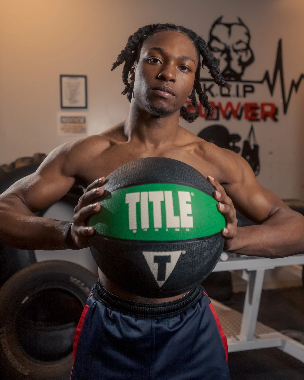 Rubber weighted medicine ball.